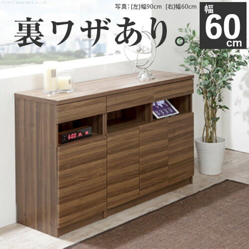 【仕様】本体:プリント紙化粧パーティクルボード前面:合成樹脂化粧繊維板引出し:スライドレール付◎組立式【サイズ】幅60x奥行37.5x高さ80cm重量:21kg引出内寸(有効):幅50.5x奥行22x高さ6.5(8.5)cmオープン部有効内寸:幅56x奥行25.5x高さ13.5cm扉内内寸(間口):幅56(53)x奥行25.5x高さ43(42)cm棚板サイズ:幅56x奥行24cm・厚み15mmダボピッチ(扉内・背面):下から8cm、6.4cmピッチで5穴背面収納部有効内寸(上段):幅56x奥行7x高さ24.5cm背面収納部有効内寸(下段):幅56x奥行7x高さ43cm(間口高さ41cm)背面収納部棚板サイズ:幅56x奥行8cm・厚み15mm天板配線カット:12x1.5cm幅木カット:12x1cm株式会社ナカムラ(F0800452)【納期目安】メーカーより直送/翌営業日から5営業日出荷※メーカー在庫での対応となります。
