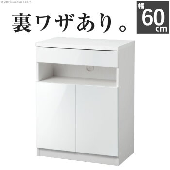 キャビネット 白 北欧 配線収納 付き リビング キャビネット ロビンキャビネット 幅60cm 木製 ファックス台 電話台 プリンター台 チェスト 白家具 鏡面 リビング 収納 新生活 引越し 家具 ※北海道 沖縄 一部離島は別途送料がかかります メーカーより直送します F0800453
